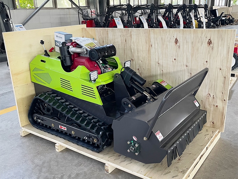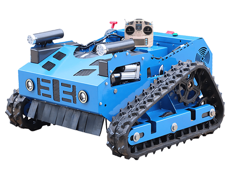 The remote-controlled tracked lawnmower is a practical tool for grass care. Its tracked structure boosts stability on uneven, sloped, or rough lawns, avoiding the trouble of manual pushing. With simple remote operation, it allows precise control to cut grass neatly and efficiently. Suitable for both residential small lawns and small-scale commercial green areas, it simplifies lawn maintenance work.