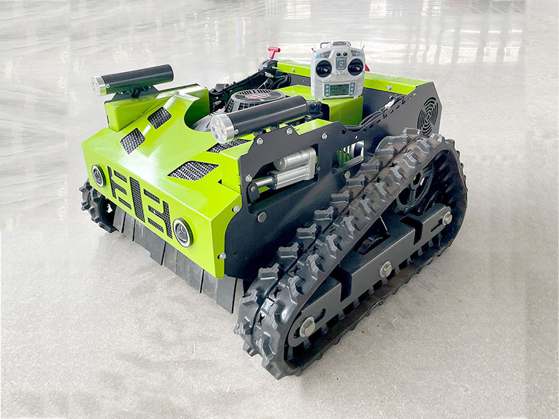 The remote-controlled tracked lawnmower is a practical tool for grass care. Its tracked