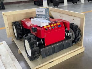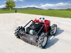The remote-controlled tracked lawnmower is a practical tool for grass care. Its tracked