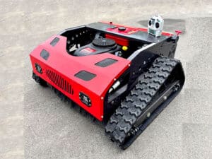 The remote-controlled tracked lawnmower is a practical tool for grass care. Its tracked